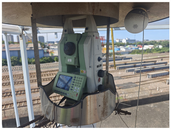 Field monitoring was conducted using an intelligent automatic monitoring method, with a fully automated measuring robot as the core data acquisition device. Figure 9 shows the on-site observation device diagram. The measuring robot employed a Leica TS30 Ultra-High Precision Total Station, featuring an angular measurement accuracy of 0.5 s and a distance measurement accuracy of 0.6 mm + 1 ppm. Data are automatically collected every hour. Due to the influence of weather and train obstruction during data collection, the data may be missing or abnormal. We use linear interpolation to fill these missing values. The data collected was then organized into a dataset for this study, resulting in a monitoring dataset consisting of 3212 samples. Each sample comprised 82 input parameters and one output parameter, both of which represented the displacement of the sample point in the direction perpendicular to the ground. The dataset follows the principle of using 70% of the data as the training set and 30% as the validation set.