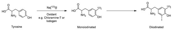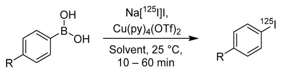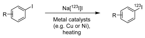 - Petrov, S.A.; Yusubov, M.S.; Beloglazkina, E.K.; Nenajdenko, V.G. Synthesis of radioiodinated compounds. Classical approaches and achievements of recent years. Int. J. Mol. Sci. 2022, 23, 13789. [Google Scholar] [CrossRef] [PubMed]