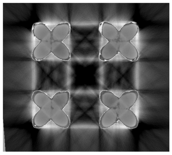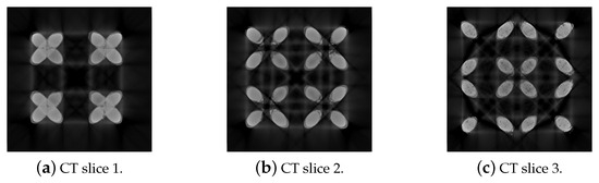 The original CT section is shown in Figure 7. It can be seen from Figure 7 that there are many metal artifacts in the lattice structure CT slices at different stages.