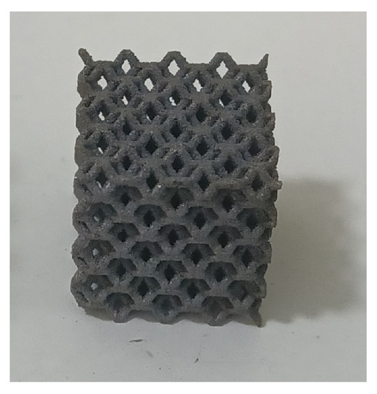 A titanium alloy lattice structure sample measuring 5 cm by 5 cm by 10 cm is employed as the research item in this paper. Figure 5 depicts the test piece.