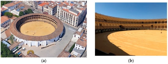 The Royal Maestranza de Caballería of Ronda (RMCR), created in the 16th century for the defence of the city and its territory, is today a non-profit charitable organisation dedicated to cultural promotion and the teaching of horsemanship [22]. Among its assets, the bullring stands out; located within the historical centre of Ronda, it is one of the oldest in Spain and was declared a Site of Cultural Interest in 1993 in the monument category.