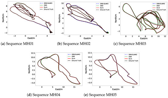 The EuRoC dataset [16] represents an indoor MAV flight dataset, encompassing stereo grayscale images, IMU data, and Leica Vicon’s pose ground truth. Grayscale images are collected at a frequency of 20Hz. Due to space limitations, we focus on sequences MH01–05 for SLAM performance evaluation.