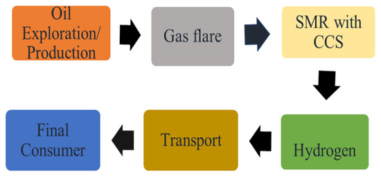 While natural gas remains the primary source for hydrogen production, accounting for 75% of the world’s supply through the SMR process, which is significantly higher than the electrolysis method [17], this method emits up to 10 kg of CO2 per kg of hydrogen produced [18]. However, this CO2 is significantly reduced when SMR is used with CCS, producing what is known as blue hydrogen [19,20,21]. Nigeria has a natural gas reserve of 5.94 trillion standard cubic meters [22], offering a promising market for hydrogen production, which could play a crucial role in alleviating the nation’s ongoing challenges with sustainable gas flaring.
