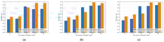 Detection rate according to the number of singular values. (a) SNR = 4 dB. (b) SNR = 10 dB. (c) SNR = 16 dB.