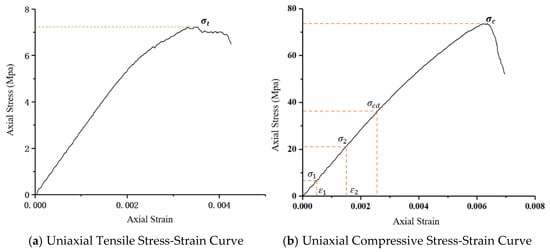 Comparison of uniaxial compressive and tensile stress–strain curves.