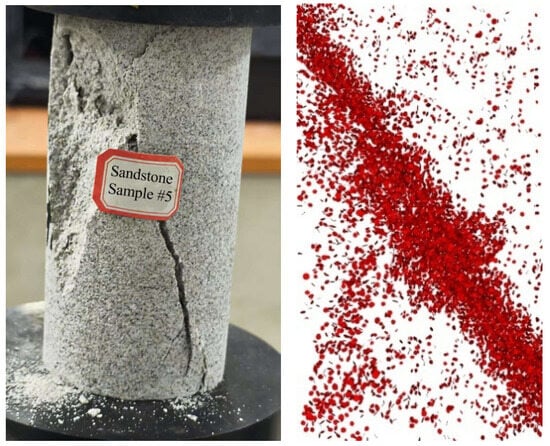 - Xu, C.H.; Zhang, B.; Qin, X.H.; Zhou, C.X.; Wei, J.G. Mesoscopic parameter calibration in the PFC3D numerical model based on the PB+CCD design method. Sci. Technol. Eng. 2024, 24, 13512–13520. [Google Scholar]