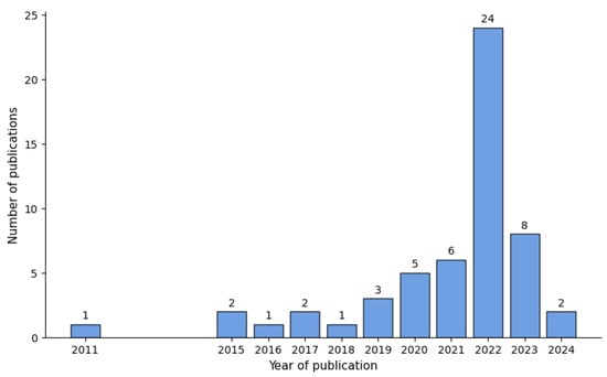The bibliometric analysis reveals a significant growth in scientific production between 2011 and 2024, with an exponential increase observed from 2020, peaking in 2022. As shown in