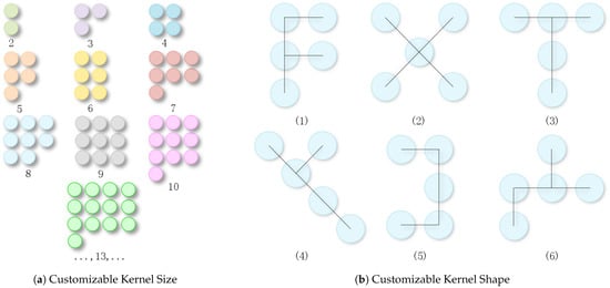 Initial sampling shape; (a) illustrates the flexibility of kernel size customization, while (b) provides an example of the kernel shape with a fixed size of .