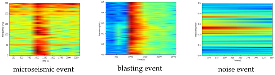 Time–frequency diagram of microseismic monitoring waveform.