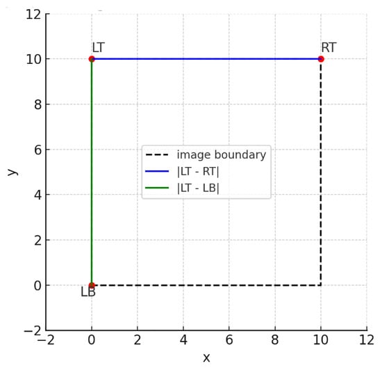 Schematic diagram illustrating the positions of LT, RT, and LB, and the distances used in Equations (1) and (2).