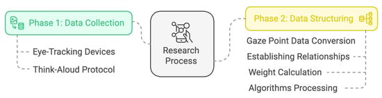 Based on this four-dimensional theoretical framework, this study develops a computational approach to reveal the structural organization of visual exploration in design contexts. Through the proposed analytical dimensions—spatial clustering, associative relations, attentional weights, and temporal dynamics—we aim to demonstrate that the designers’ viewing behavior exhibits systematic organizational patterns that can be computationally modeled and visualized. This framework moves beyond traditional statistical measures to provide new insights into the cognitive mechanisms underlying professional visual expertise, offering a foundation for understanding how design thinking manifests in structured viewing behaviors.