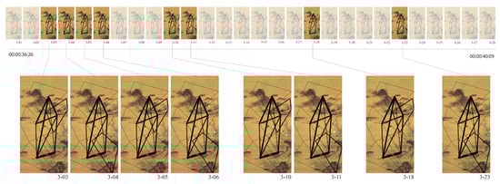 The main advantage of this method lies in its high flexibility and adaptability, allowing it to handle various image transformations, including rotation, scaling, and perspective distortion. This not only improves the accuracy of eye-tracking data analysis but also provides greater flexibility in experimental design. To evaluate the accuracy of the proposed method, we conducted a comparative analysis with a standard homography-based transformation approach. Specifically, three representative video frames (frames 126, 350, and 2710) were selected from the experimental dataset, and both methods were applied to the same fixation point (1190, 865) for coordinate mapping. The resulting transformed coordinates revealed spatial deviations, calculated as Euclidean distances, of 130.9, 141.6, and 239.4 pixels, respectively. The root-mean-square error (RMSE) across the three frames was 177.45 pixels. Given the resolution of the reference image (10,000 × 10,000 pixels), this error accounts for less than 2% of the total image dimensions. Such precision is considered acceptable for visualization-based structural modeling and exploratory analysis in eye-tracking studies, especially in contexts where real-time performance and operational flexibility are prioritized over sub-pixel geometric accuracy. These results support the spatial consistency of the proposed method and confirm its applicability for analyzing gaze distributions across complex visual stimuli.
