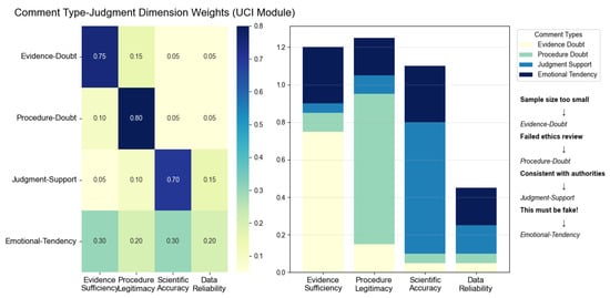 While effectively identifying fake news, improving the interpretability of detection decisions is of great significance for building public trust and supporting human intervention [,]. With the rapid development of Explainable Artificial Intelligence (XAI), incorporating its principles into multimodal misinformation identification tasks can achieve the synergistic goal of “visual explanation + social context explanation” [,]. Specifically, fake news detection not only requires high accuracy but also needs the model to answer “why” certain information is judged as false, which relies on the joint support of cross-modal semantic consistency and verifiable signals from user comments [,].
