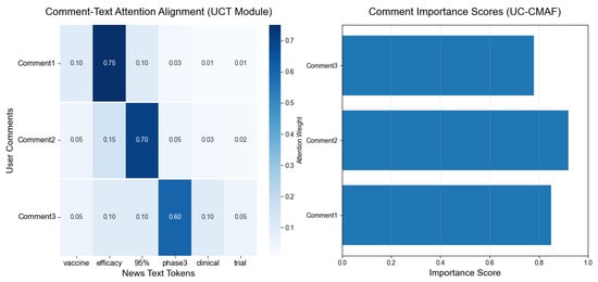 The experimental evaluation demonstrates UC-CMAF’s superior performance across multiple benchmark datasets. Our framework achieves remarkable results with 92.7% accuracy and 89.4% F1 Score on the ReCOVery dataset, and 93.1% accuracy with 90.9% F1 Score on MMCoVaR, significantly outperforming existing state-of-the-art methods. Beyond performance metrics, UC-CMAF addresses the critical demand for explainable AI through comprehensive multi-head attention heatmaps and comment importance visualizations, while maintaining robust performance against adversarial attacks with defense effectiveness rates ranging from 81.1% to 91.3%.