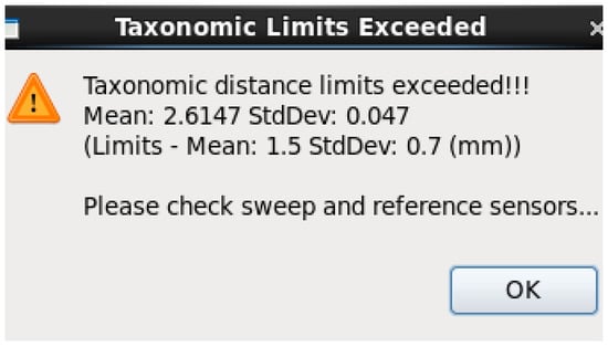 Warning signal that the taxonomic distance limits have been exceeded.