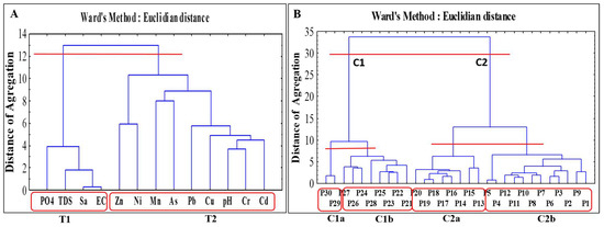 3.3. Multivariate Analysis of Physicochemical Quality of the Waters