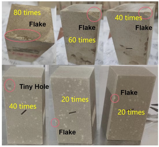 Figure 2 shows the damage pattern of some sandstones after being subjected to freeze–thaw cycles.