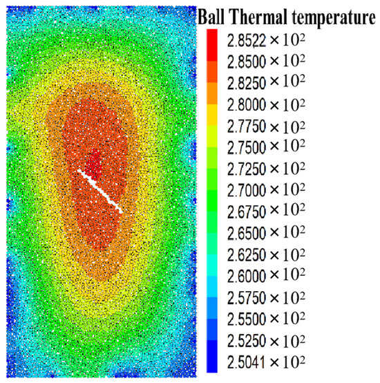 In PFC, the heat transfer differential equation of the thermal calculation module is derived based on the continuity equation and Fourier’s law of heat conduction. The following assumptions are present in the thermal calculation module of the PFC: 1. The strain of the particles due to the temperature does not affect the heat transfer. 2. No thermal radiation or convection occurs between particles during the heat transfer process [31]. The heat transfer differential equation is expressed as Equation (5):