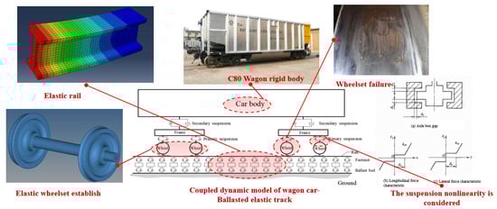 - Zhang, D.; Zhai, W.; ZHUSet, a.l. Wheel-rail Dynamic Interaction between Heavy-haul Freight Car and Ballasted Track Based on A Nonlinear Rubber Spring Model. J. China Railw. Soc. 2016, 38, 19–27. [Google Scholar]