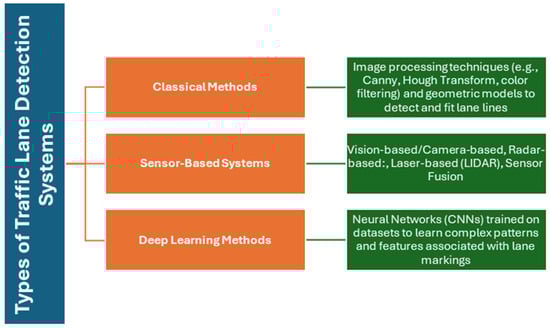Main classification of traffic lane detection systems.