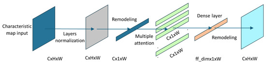 The integration of the transformer encoder (TE) in skip connection addresses the fundamental challenge of capturing long-range spatial dependencies essential for lane detection. The TE is strategically placed at the deepest skip connection (c4 level) where spatial dimensions are reduced, making the computational complexity manageable (Figure 6). The implementation uses four attention heads with 32 key dimensions, enabling simultaneous capture of different spatial relationships. The spatial dimensions are flattened (H × W → sequence length) to apply self-attention across all spatial positions, allowing the model to connect distant lane segments interrupted by occlusions. The TE block incorporates pre-normalization and residual connections, following the standard transformer architecture. A two-layer MLP with ReLU activation processes attention output, expanding to 256 dimensions before projecting back to the original channel size, enabling complex feature transformations.