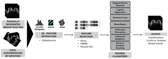 Chicago/Turabian StyleConte, Luana, Rocco Rizzo, Alessandra Sallustio, Eleonora Maggiulli, Mariangela Capodieci, Francesco Tramacere, Alessandra Castelluccia, Giuseppe Raso, Ugo De Giorgi, Raffaella Massafra, and et al. 2025. "Radiomics and Machine Learning Approaches for the Preoperative Classification of In Situ vs. Invasive Breast Cancer Using Dynamic Contrast-Enhanced Magnetic Resonance Imaging (DCE–MRI)" Applied Sciences 15, no. 14: 7999. https://doi.org/10.3390/app15147999