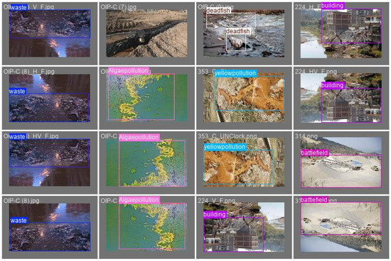 As demonstrated in Figure 6, across a range of image types—including sewage outlets, sand yards, buildings, river and lake water pollution, and oil-based pollution—the data augmentation tool delivers favorable outcomes. It effectively enhances annotation efficiency and accuracy, underscoring the tool’s practical value in processing real-world datasets.