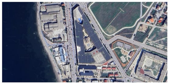 The dataset for this experiment was obtained from a PV power plant with a 1 MW installed capacity located in Çanakkale, Turkey. Çanakkale is situated in the northwest of Turkey, and most of its land lies within the borders of the Marmara Region. It is between 25°40′–27°30′ east longitudes and 39°27′–40°45′ north latitudes. The weather station integrated into the power plant provides real and reliable meteorological data. Many PV power generation systems have been installed in the region. Among the PV systems, the system located between 26°41′ longitude and 40°12′ latitude was selected as the one that best meets the ideal standards for data collection. The collected data, which contains records between 1 August 2022 and 3 August 2024 in 15 min intervals, is published for the first time in the literature and is publicly available in Supplementary Materials. Besides the active power data of the PV panels, the dataset includes meteorological data on total radiation, wind speed, PV module temperature, and ambient temperature, obtained from the meteorological measurement station of the power plant where the panels are located. Other data that could not be measured at the PV power plant meteorological station (such as relative humidity, wind direction, and dew point) were obtained from source [79] for the same dates and within the same time range. The satellite image of the PV power plant from which the data were taken is given in Figure 1 [80].