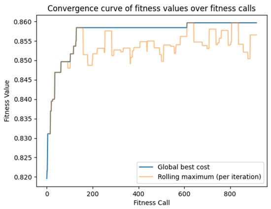 In this study’s genetic algorithm approach, each potential solution was represented by a binary chromosome, where each gene indicates whether a particular feature was included (1) or excluded (0). The algorithm aimed to maximize the model’s performance, measured by the value of a neural network-based regressor containing two fully connected layers with 64 units. The number of agents, iteration size, crossover rate, and mutation rate were set to 30, 30, 0.8, and 0.2, respectively. A penalty term proportional to the number of active features was subtracted from the score to discourage the selection of too many features. Thus, the overall fitness function for a chromosome can be expressed as shown in Equation (4).