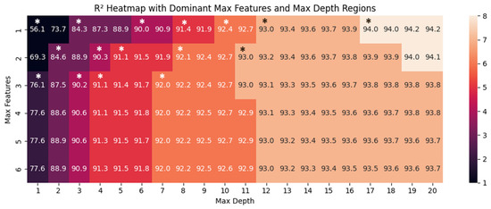 In this study, the random forest algorithm used for feature-importance measurement consisted of 100 estimators (trees). Additionally, the maximum depth of each tree and the maximum number of features used for splitting were tuned via a grid search to determine the most effective parameter values for this dataset. The model can strike an optimal balance between simplicity and flexibility by systematically testing different combinations of these hyperparameters. Once the best combination was identified, the random forest was restricted to these dominant parameter values in subsequent training sessions. Limiting the maximum depth, in particular, helps prevent overfitting because shallow trees are less likely to memorize training data. Instead, they learn more general patterns that can be applied to new, unseen examples. Likewise, an appropriate choice of max features can reduce the chance of focusing on a small subset of overly dominant parameters, thereby enhancing the diversity and robustness of the forest. These tuned hyperparameters help produce a more accurate and generalizable model while preserving interpretability through more stable feature-importance scores.