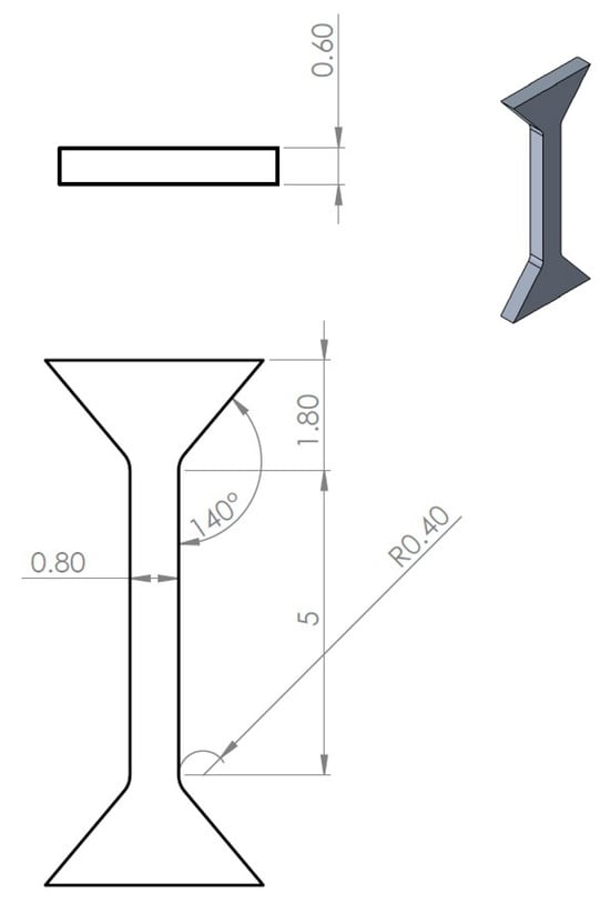 - Small specimens for tensile test (SSTT), according to specifications in Figure 2;
