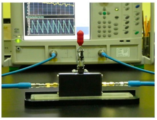 The precise dielectric properties of this tissue-simulating liquid were determined using a Di-line measurement system, as illustrated in Figure 16. This system has been previously validated and employed by the author for the accurate characterization of liquids utilized in various human body phantom studies, as referenced in [25,26,27]. The characterization results, directly obtained from the Di-Line software version 1.0, are systematically presented in Figure 17. Notably, the measured values for the liquid’s properties align closely with those reported in the existing literature for comparable tissue-simulant liquid materials [28], thus validating the fidelity of the phantom’s dielectric representation.