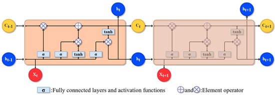 The input of LSTM is the input of the current time step and the hidden state of the previous time step. The output is the fully connected layer’s output for the calculation of the Sigmoid function. The calculation of each gate unit is shown in Equation (10).