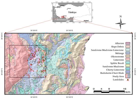 The lithological configuration of the study area is adapted from the 1:100,000 scale geological maps published by MTA, with modifications [].