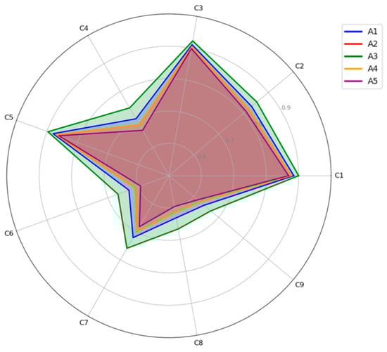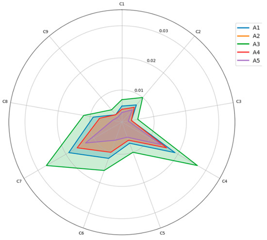| Scenario | Weight of C6 (w6) | A1 Rank | A2 Rank | A3 Rank | A4 Rank | A5 Rank | Final Ranking (A3 > A4 > A1 > A5 > A2) |