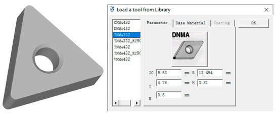 To further investigate the modeling capabilities of KAN-A/B/C on tool wear, we conducted additional simulation turning tests using DEFORM-3D software (version 11.0). Compared with ABAQUS and ANSYS (https://www.ansys.com/), DEFORM-3D offers distinct advantages, including a comprehensive material library, rational mesh generation, and efficient data acquisition. The turning simulation was performed using TNMA332 tools with key parameters configured, as shown in Figure 8.