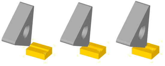 During the turning process, the relative positional relationship between the tool and workpiece is illustrated in Figure 9. The mesh deformation of the workpiece is shown in Figure 10. The temperature variation in the contact zone between the workpiece and cutting tool is presented in Figure 11.