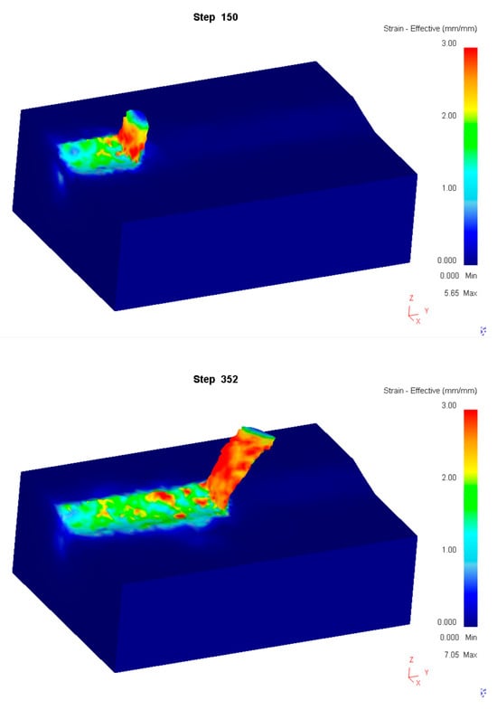 The cutting parameters were set as follows: a cutting speed of 250 mm/s and a depth of cut of 0.5 mm along the lathe’s Y-axis. The Johnson–Cook constitutive model was employed to characterize the workpiece material’s dynamic behavior, while the normalized C&L fracture criterion served as the separation criterion. A shear friction model with a coefficient of 0.45 was applied to the tool–workpiece interface.