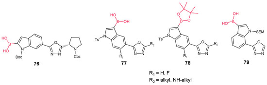 3.3.2. Boronic Acid Derivatives of 1,3,4-Oxadiazol-2-yl-indoles