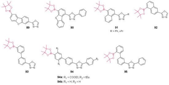 3.1. Direct Connection of Boron with 1,3,4-Oxadiazole Ring