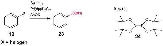 - Miyaura borylation of aryl and vinyl halides using bis(pinacolato)diboron (method B),