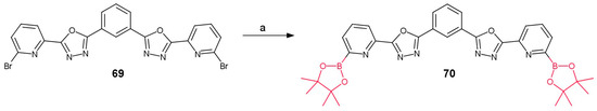 | 4 | 72 | Pd(PPh3)2Cl2 | 1,4-dioxane | AcOK | 70 °C/12.5h | 76% | [90] |