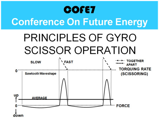 At the same conference, the same author presented a second paper [21], from which Figure 1 was derived with his kind permission. It illustrates the sawtooth-shaped input torquing rate waveform (referred to as “scissoring”) used to generate a pulsed output force. He claimed that by applying torque rapidly in one direction and slowly in the other, a pulsed (average) output force is produced, with a similar waveform to that observed in systems involving rotating masses.
