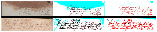 - Pratikakis, I.; Zagoris, K.; Barlas, G.; Gatos, B. ICFHR2016 Handwritten Document Image Binarization Contest (H-DIBCO 2016). In Proceedings of the 15th International Conference on Frontiers in Handwriting Recognition (ICFHR), Shenzhen, China, 23–26 October 2016; pp. 619–623. [Google Scholar]