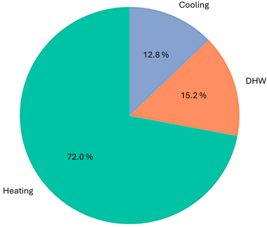 - Heating dominates, accounting for approximately 60–70% of total energy use.