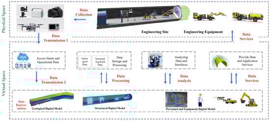 Feng Shao et al. [26] applied digital twin technology to underground space visualization, underground construction, and underground disaster prevention monitoring and analysis, and they established an intelligent overall planning model for underground space based on a digital twin model.