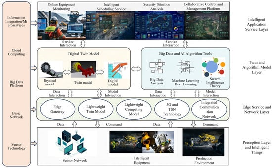 Service framework of an intelligent mine based on a digital twin (reproduced from Enjie Ding et al. [7]).