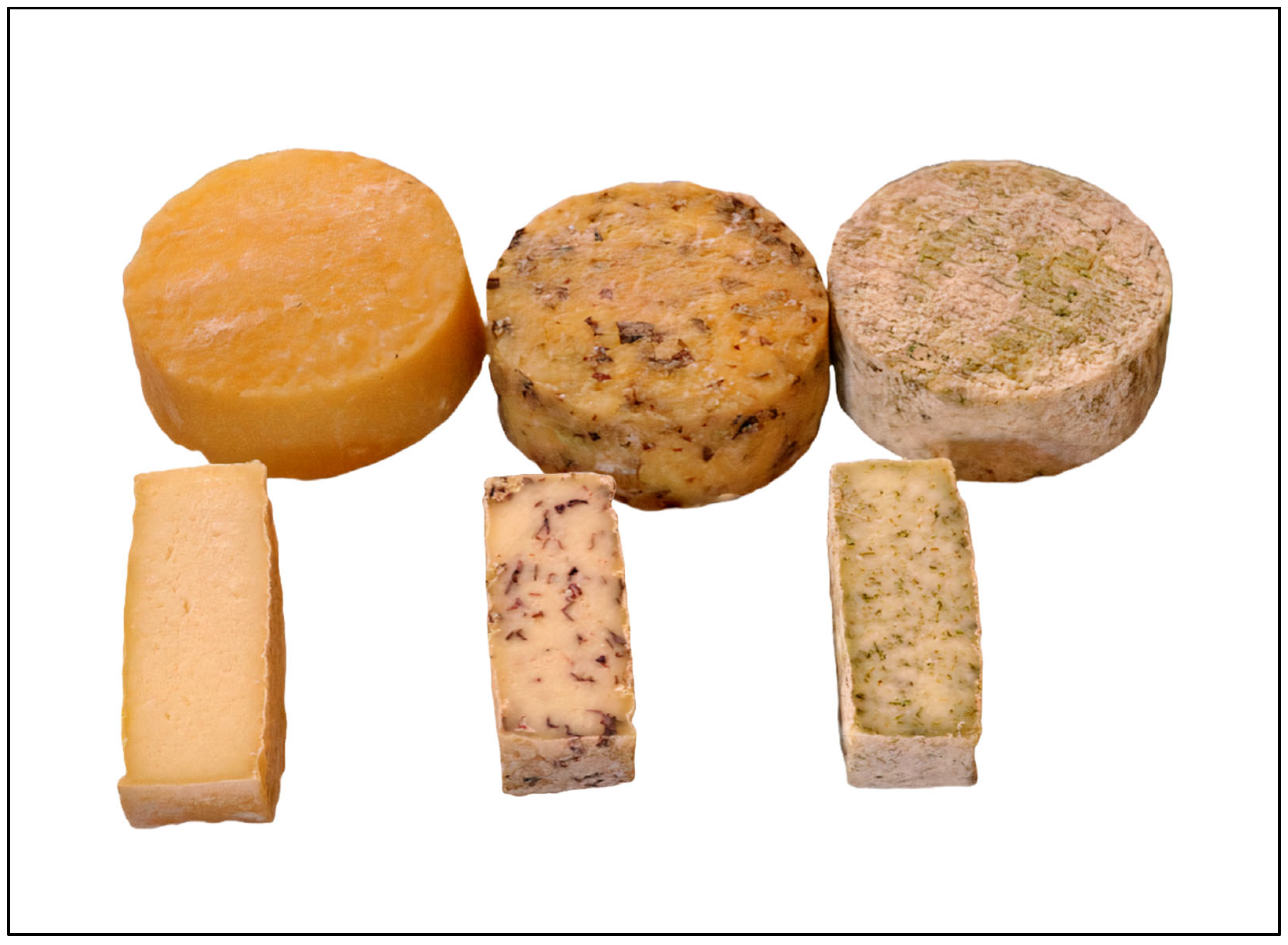 - Freitas, C.; Xavier Malcata, F. Microbiology and Biochemistry of Cheeses with Appélation d’Origine Protegée and Manufactured in the Iberian Peninsula from Ovine and Caprine Milks. J. Dairy Sci. 2000, 83, 584–602. [Google Scholar] [CrossRef]