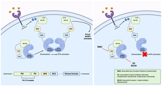 - Tavakoli, G.M.; Yazdanpanah, N.; Rezaei, N. Targeting Bruton’s Tyrosine Kinase (BTK) as a Signaling Pathway in Immune-Mediated Diseases: From Molecular Mechanisms to Leading Treatments. Adv. Rheumatol. 2024, 64, 61. [Google Scholar] [CrossRef] [PubMed]