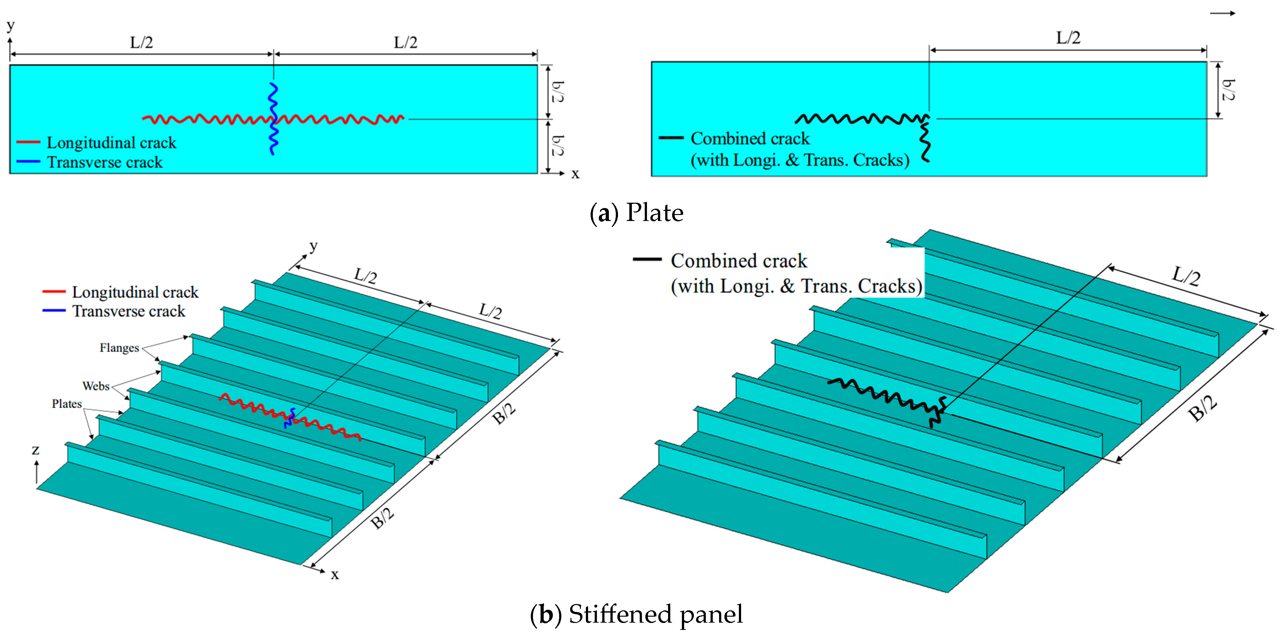 Ultimate strength of cracked stiffened panels with combined cracks.